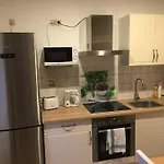 Ferienwohnung Sporn的房间内有微波炉和冰箱. Bürgerhaus巴士站距离公寓不远,步行只需5分钟就到了.